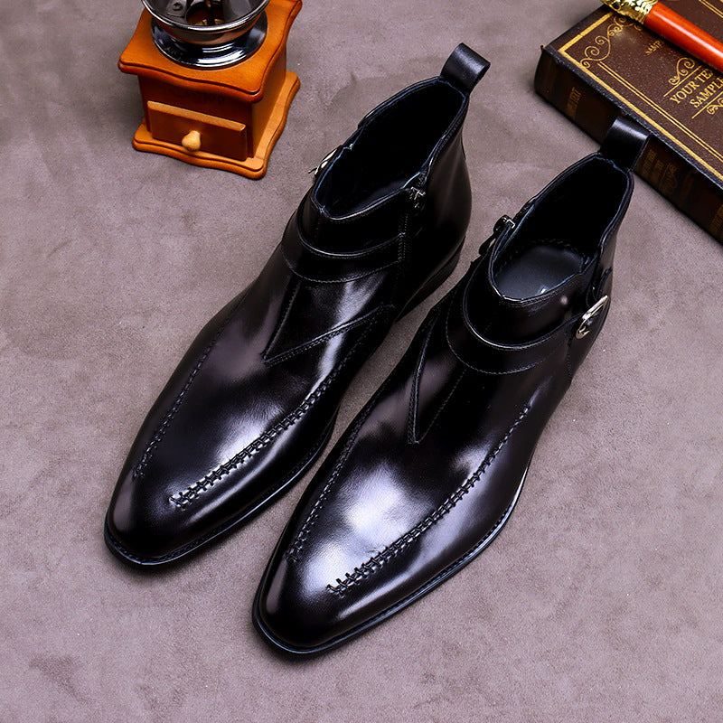 Buckle Fashion Short Boots British Large Size Business Lace-up Casual Leather Shoes