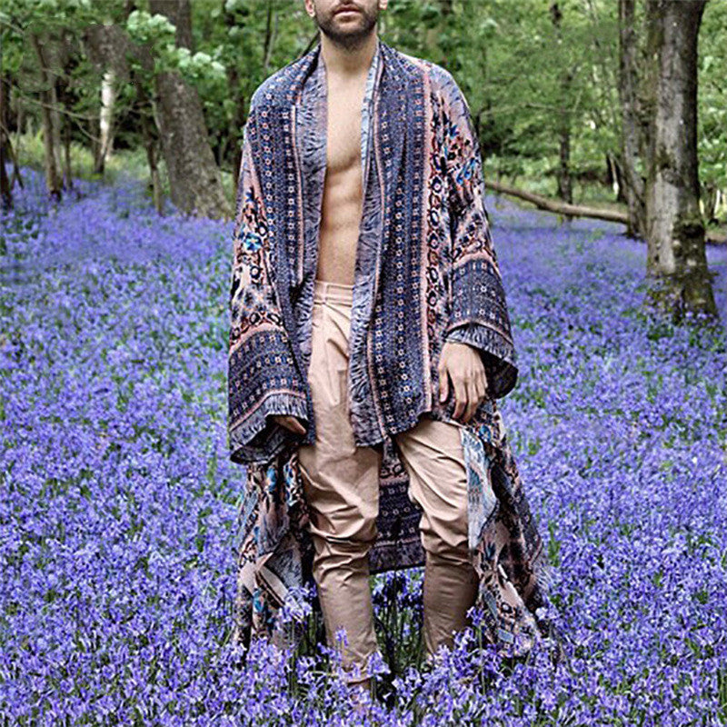 Popular Men's Loose Mid Length Printed Cardigan Fashion Shirt Jacket