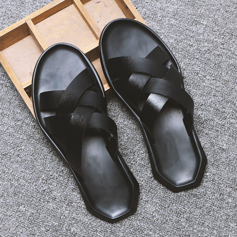 Summer Roman men's woven sandals breathable non-slip one word beach slippers